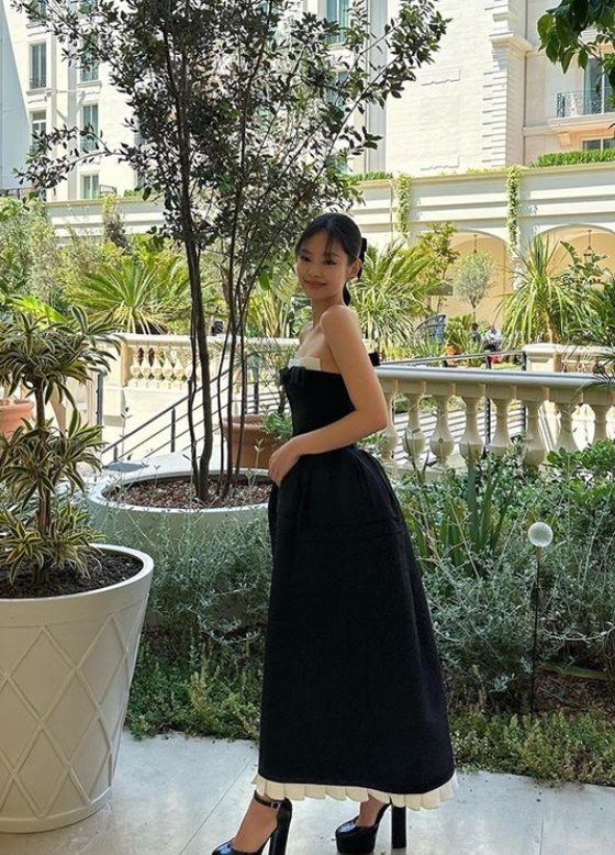 '디 아이돌'을 통해 배우로 데뷔한 제니가 칸 영화제 레드카펫에 등장하자 팬들의 탄성이 터져나왔다. 제니는 어깨를 드러낸 원피스를 착용하고 등장했다. 흰색 디테일이 돋보이는 검은색 드레스로 고급스러운 분위기를 풍겼다.