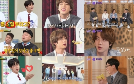 tvN 예능프로그램 '유 퀴즈 온 더 블럭'에서도 진은 유재석이 "석진이(진의 본명) 재밌네, 석진이 재밌어"라고 말하며 박장대소하게 하는 천재적인 센스로 시청자를 사로잡았다.