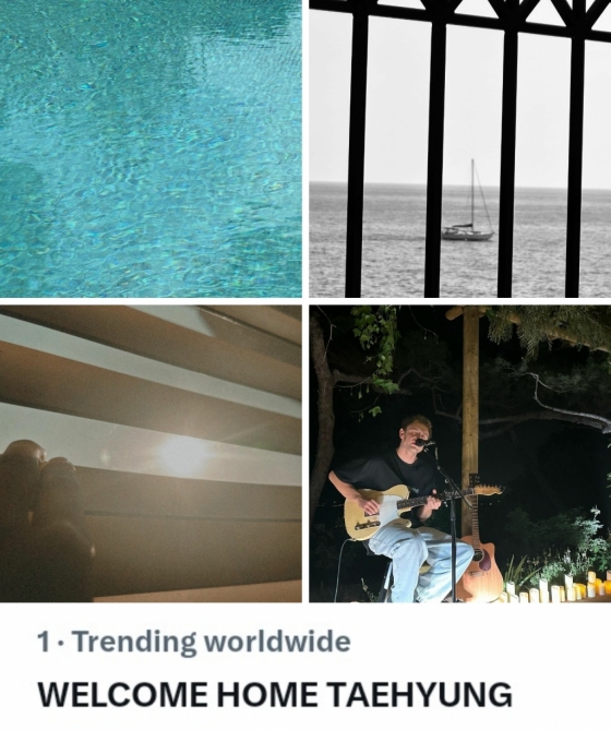 뷔는 이국적인 풍경과 프랑스에서의 일상이 담긴 사진을 올려 팬들에게 공유했다. 프랑스 남부 코트다쥐르의 푸른 물결과 요트가 떠 있는 한가로운 바다, 강렬한 태양 등 뷔의 시선이 닿은 곳의 풍경이 담긴 사진에서는 뷔의 감성이 고스란히 묻어나왔다.