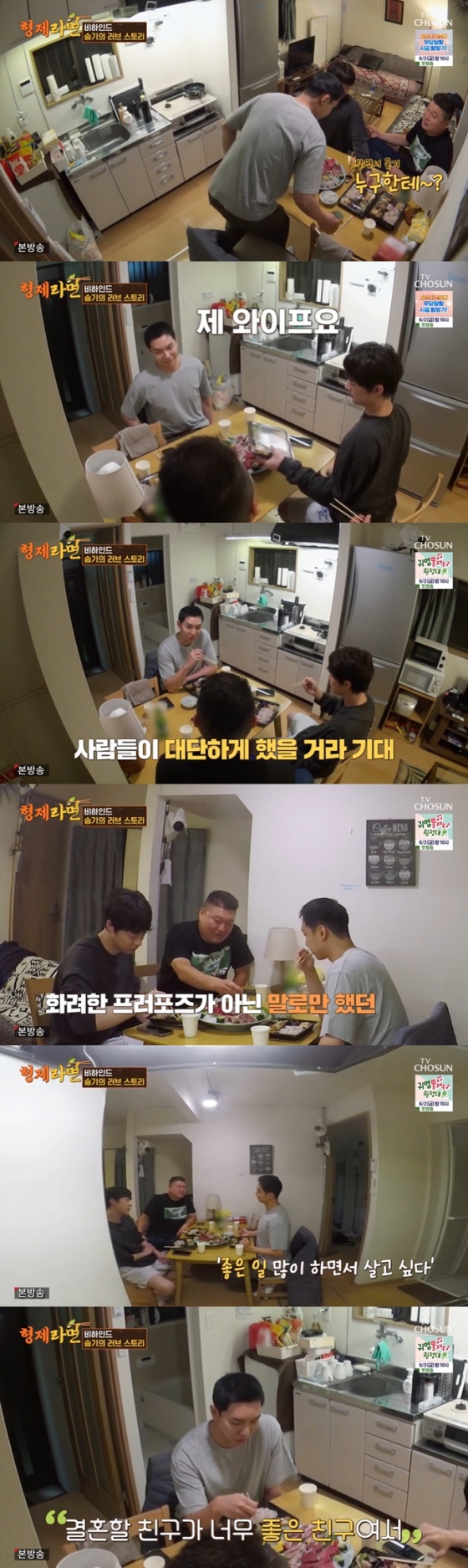 29일 방송된 TV조선 예능프로그램 '형제라면'에서는 이승기가 이다인과 행복한 결혼생활을 기대하는 모습을 보였다.