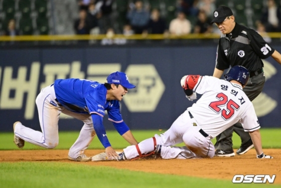 그러나 양의지는 지체 없이 2루 베이스로 향했다. 혼신의 질주를 선보인 양의지는 2루에 헤드퍼스트 슬라이딩으로 들어갔다. 앞서 4년 동안 한솥밥을 먹었던 NC 2루수 박민우조차 놀랍다는 표정을 지을 정도였다. 양의지가 헤드퍼스트 슬라이딩을 시도하는 건 자주 보기 어려운 일이기 때문이다.