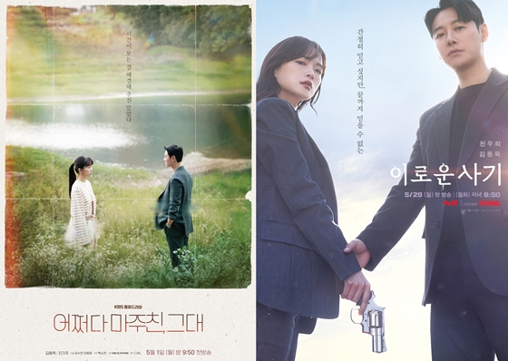 현재 방영 중인 월화드라마는 KBS 2TV 월화드라마 '어쩌다 마주친, 그대', tvN 월화드라마 '이로운 사기'다. 두 작품은 시청률 4%대(닐슨코리아 기준)로 접전 중이다. 김동욱이 두 작품에서 남자 주인공으로 출연 중이다.