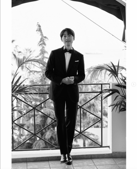 공개된 사진에는 송중기가 깔끔한 슈트를 입고 장난치는 모습이 담겼다. 송중기는 여전히 조각 같은 비주얼로 시선을 모았다.