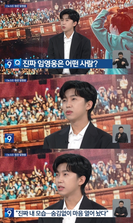 임영웅은 2일 오후 방송된 KBS 1TV '뉴스9'에 출연해 21년차 베테랑 기자이자 9시 뉴스를 진행하는 이소정 앵커를 만났다.