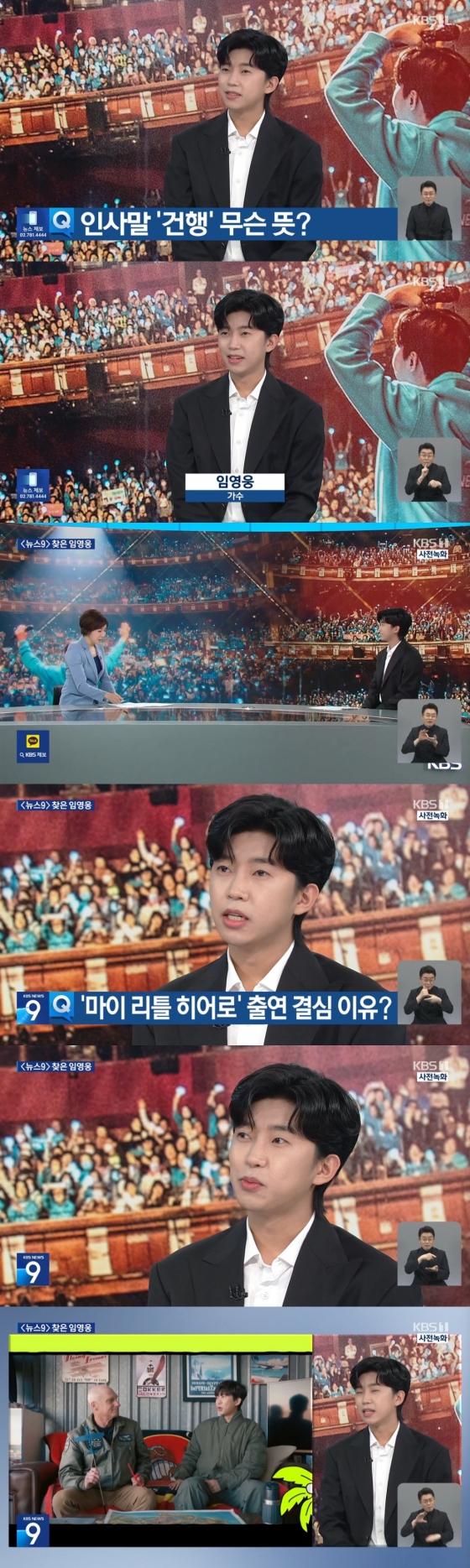 임영웅은 2일 오후 방송된 KBS 1TV '뉴스9'에 출연해 21년차 베테랑 기자이자 9시 뉴스를 진행하는 이소정 앵커를 만났다.