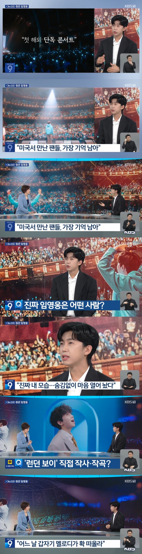 임영웅은 지난해 11월 발매한 '런던 보이'(London Boy) 탄생 비화도 전했다. "직접 작사, 작곡했다"는 임영웅은 "내 자작곡을 쓰는데 시간이 더 오래 걸릴 줄 알았다. 어느 날 갑자기 가사와 멜로디가 확 떠올랐다. 전문가들의 도움을 받아서 하다보니까 금방 하게 되더라"고 말했다.