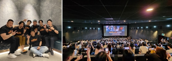 300만 돌파 흥행 신기록을 만들어준 관객들의 성원에 보답하기 위해 영화 '범죄도시3' 배우와 감독은 주말 감사 무대인사를 진행중이다. 300만 돌파 소식과 함께 마동석, 이준혁, 아오키 무네타카, 김민재, 전석호, 안세호, 이상용 감독이 300만 흥행 감사 인증샷을 전했다.