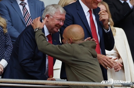 '명장들의 조우' 펩-퍼거슨, 뜨거운 포옹