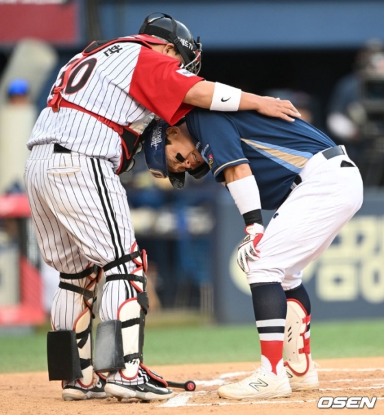 그러나 유영찬도 흔들렸다. 선두타자 손아섭에게 볼넷을 내준 뒤 2루 도루마저 허용했다. 이어 서호철에게 우전 안타를 내주며 무사 1, 3루 위기를 자초했다. 박건우는 1루수 플라이 아웃. 여기서 LG는 유영찬 대신 고우석이 빠진 상황에서 클로저 역할을 맡았던 함덕주를 투입했다. 사실상 초강수였다. 하지만 함덕주는 마틴에게 좌익수 앞에 떨어지는 적시타를 내주며 점수는 3-0이 됐다. 후속 권희동은 병살타 아웃. 이닝 종료.