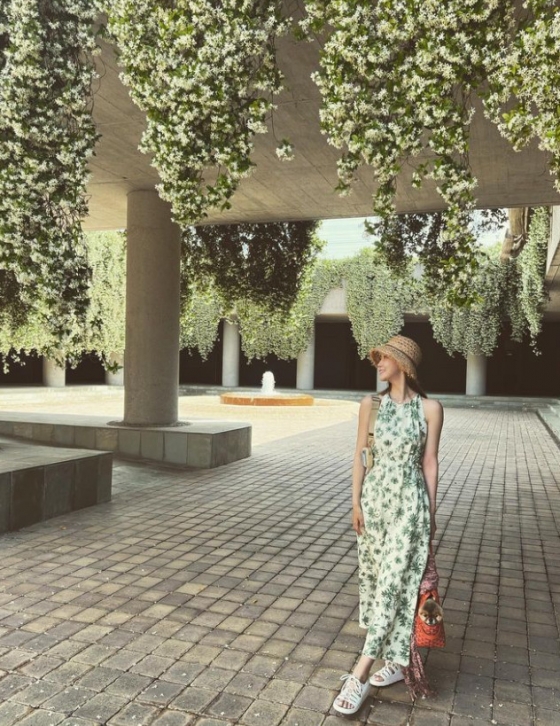 공개된 사진 속 이다해는 초록색 원피스를 입고 포즈를 취한다. 아름다운 풍경을 바라보는 그는 남편이자 가수인 세븐과의 신혼 여행을 충분히 즐거워한다.
