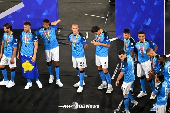 경기 전 세리에A 최우수 수비수 시상식이 진행됐다. 김민재가 시상대에 오르자 'KIM KIM KIM'을 연호했다. 김민재도 홈팬들을 향해 박수를 보내며 기쁨을 나눴다. 이어 트로피를 들고 기념촬영에 임했다. 이밖에 '최우수 공격수'로 선정된 빅터 오시멘과 '최우수 감독' 루치아노 스팔레티 감독도 시상식에 참여해 트로피를 들어 올렸다. 세리에A 최우수선수(MVP)에 빛나는 흐비차 크라바츠헬리아 함께 했다.