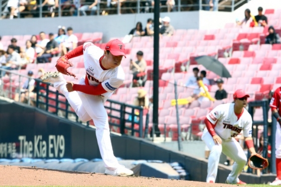 윤영철은 6일 광주 SSG 랜더스전에서 7이닝 6피안타 1볼넷 2탈삼진 2실점으로 시즌 2패(3승)를 기록했다. 패전 투수가 됐지만, 리그 1위 팀 SSG와 메이저리그 통산 133경기 출전 경력의 외국인 선발 로에니스 엘리아스(35)를 상대로 거둔 첫 퀄리티 스타트 플러스(7이닝 이상 3자책점 이하) 피칭이라 의미가 있다.