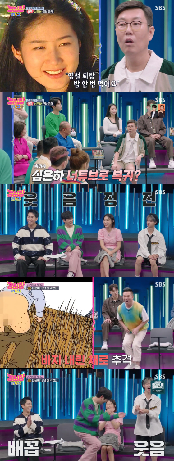 김영철의 말이 하염없이 길어지자 이승기는 결국 "그래서 뭘 털어놓았다는 거냐"고, 이지혜는 "복귀 소식은 없었냐"고 물어 웃음을 자아냈다. 김영철은 "유튜브 해보는 건 어떻겠냐고 했는데 확답은 없었다. 다음에 한 번 더 만나면 물어보겠다"고 쩔쩔맸고, 김태균은 이에 "한 번 더 만나고 나오지 그랬냐"고 일침을 날려 현장을 웃음바다로 만들었다. 팀장 강호동은 결국 "죄송하다"고 사죄해 웃음을 더했다.