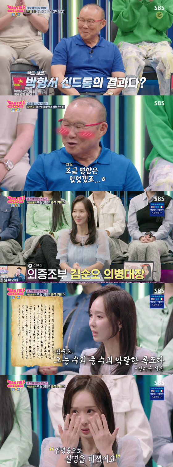 이어 박항서와 한수연의 국위선양 대결이 그려졌다. 박항서는 5년 4개월 간 베트남 축구 국가대표팀을 감독하며 막대한 영향력을 끼쳤으며, 한수연은 국가유공자의 직계 후손임을 밝혀 탄성을 자아냈다. 강호동은 먼저 박항서 덕에 베트남 축구의 위상이 높아졌을 뿐 아니라 "2021년 베트남 정부가 한국어를 제1외국어로 선정했다. 영어가 아니라 한국어를 교과과정으로 배우게 됐다"며 극찬을 전했다.