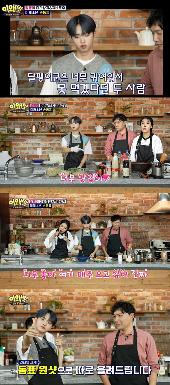 지난 6일 방송된 IHQ 예능 프로그램 '이왜맛'에서는 떠오르는 손동표가 출연해 승우아빠와 함께 달팽이 요리를 선보였다.