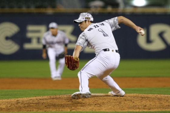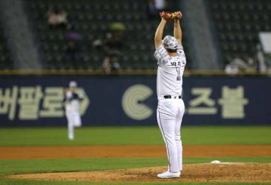 박치국은 담대하게 공을 뿌렸다. 볼카운트 1-1에서 시속 144㎞ 몸쪽 속구에 채은성의 배트가 돌았고 타구는 내야를 벗어나지 못했다. 박치국의 시즌 2번째 세이브(2승 6홀드). 자신을 가장 필요로 하는 순간에 완벽하게 팀을 구해냈다.
