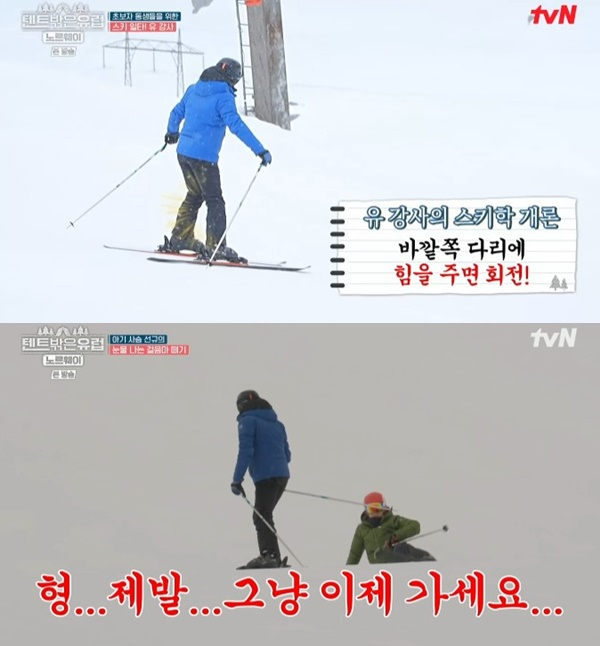 강습에 나선 유해진은 "구불 구불 내려가야 한다. 오른 쪽으로 가야하면 왼쪽 다리에 힘을 줘야 한다"며 친절히 알려줬고 멤버들은 이론은 이해했으나 쉽게 행동으로 옮기지 못했다.