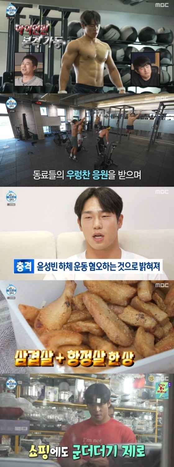 윤성빈은 120kg 데드 리프트를 하며 거뜬히 들어 올려 모두를 놀라게 했다. 그는 "나도 힘들고 짜증난다. 힘든 거 정말 싫어한다. 하지만 이게 모순인데 몸을 유지하기 위해서 운동을 해야한다"며 "하체로 유명해서 막 엄청 그런 줄 아는데 하체 못한다. 하체 운동 힘들고 제일 싫다"고 속마음을 고백했다.