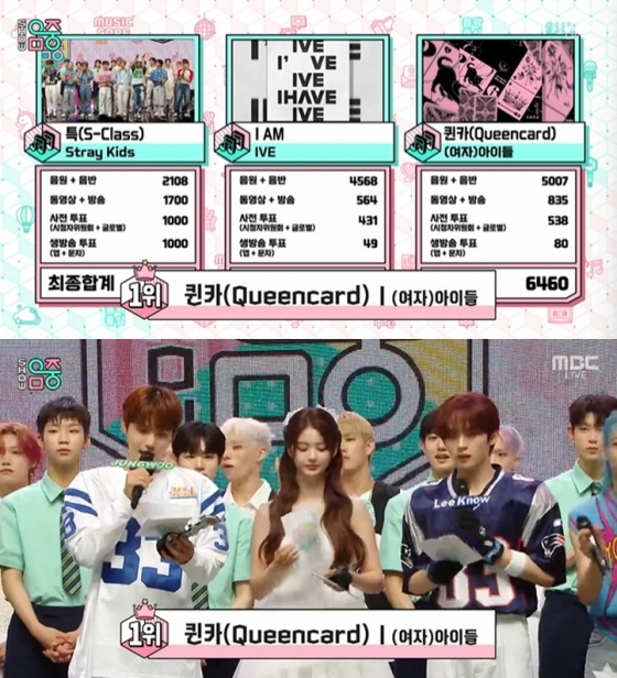10일 오후 방송된 MBC 음악 프로그램 '쇼! 음악중심'(이하 '음중')에서는 (여자)아이들이 1위를 차지했다. 이날 6월 2주차 1위 후보로 스트레이키즈 '특'(S-Class), 아이브 'I AM'(아이 엠)', (여자)아이들 '퀸카'(Queencard)가 올랐다.