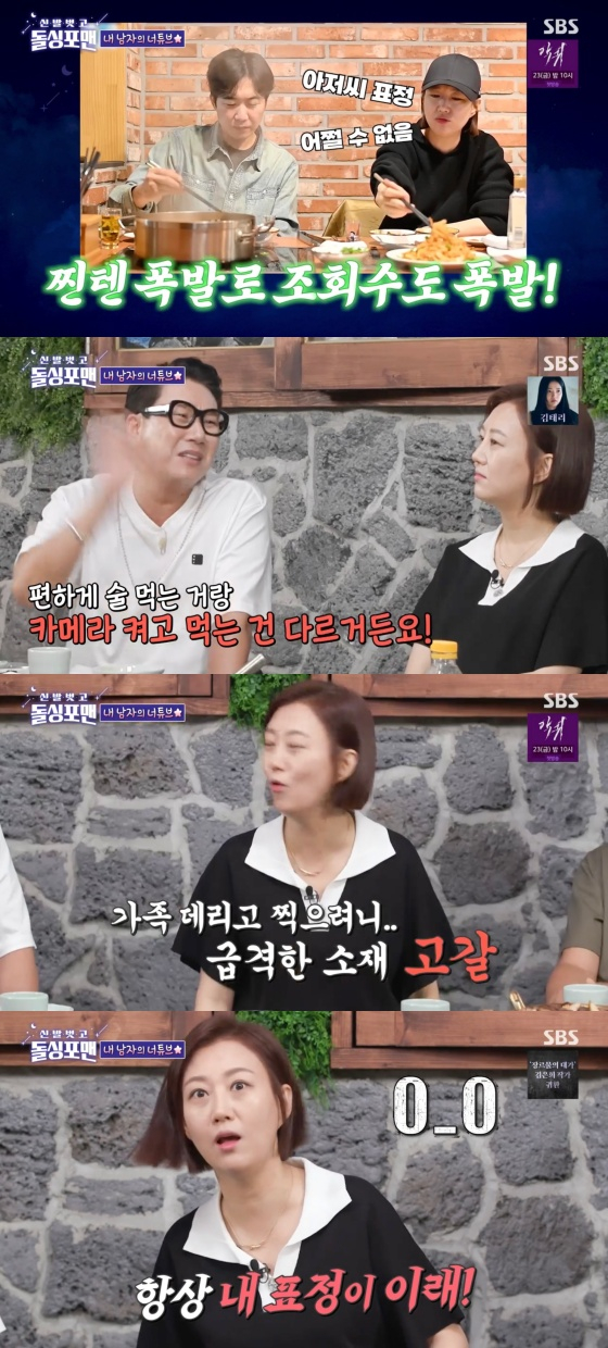 이후 이상민은 "경완이가 술 먹는 영상을 유튜브로 찍었는데 조회 수가 폭발했다"고 알렸다. 이상민은 장윤정에 "근데 사실 일하고 들어가는 데 편하게 술 먹는 거랑 카메라 켜고 먹는 거랑 다르다. 그런데도 카메라를 켜냐"라고 물었다.