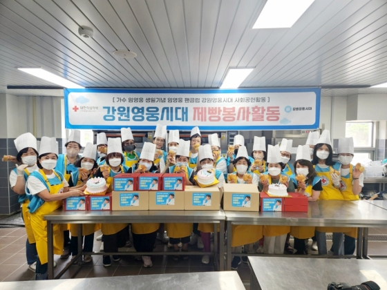 임영웅 팬클럽 강원영웅시대(회장 이미애)는 임영웅의 33번째 생일(6월 16일)을 맞아 대한적십자사 강원특별자치도지사(회장 이돈섭)를 찾아 취약계층 지원을 위한 제빵 봉사활동 및 봉사원키트 제작 봉사활동을 했다.