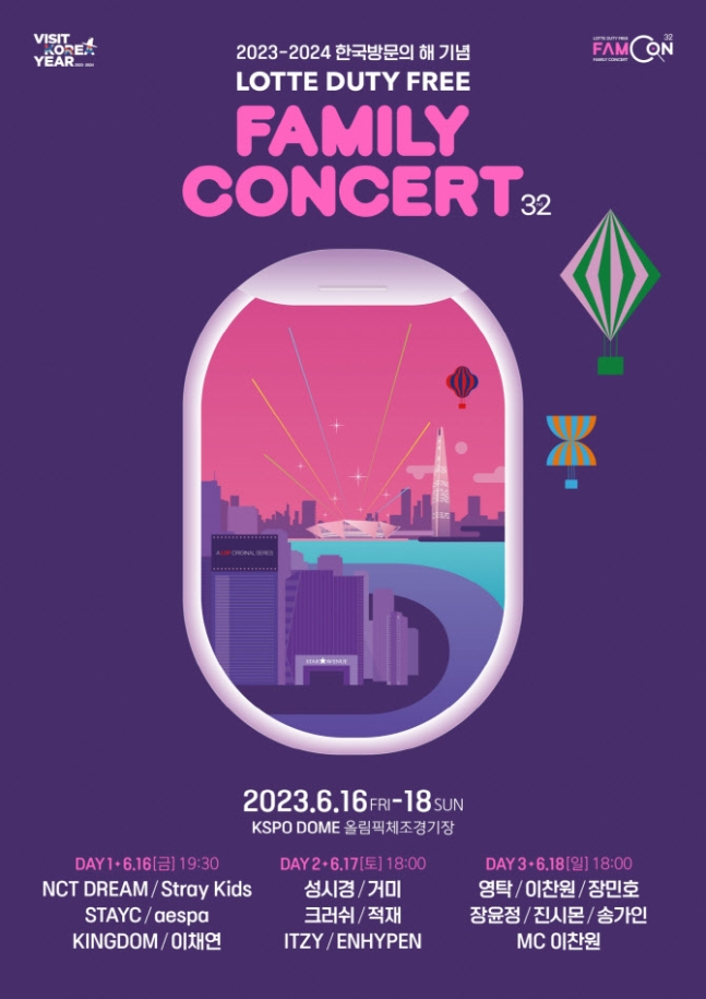 이어 롯데면세점은 2023~2024년 한국방문의 해를 기념해 제32회 롯데면세점 패밀리 콘서트를 16일부터 18일까지 올림픽 체조경기장에서 열 예정이다. 이 공연은 앞서 30회와 31회 때는 코로나 팬데믹 여파로 비대면 개최됐으며 올해로 4년 만에 대면 개최를 성사시켰다.