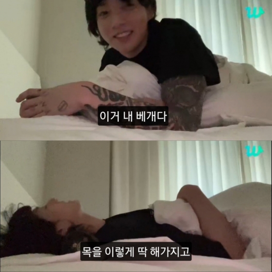 이어서 "목에 엄청 좋은 베개다"라고 남다른 애정을 보이며 베개 베는 법을 설명해주는 등 팬들의 눈길을 단번에 사로잡았다.