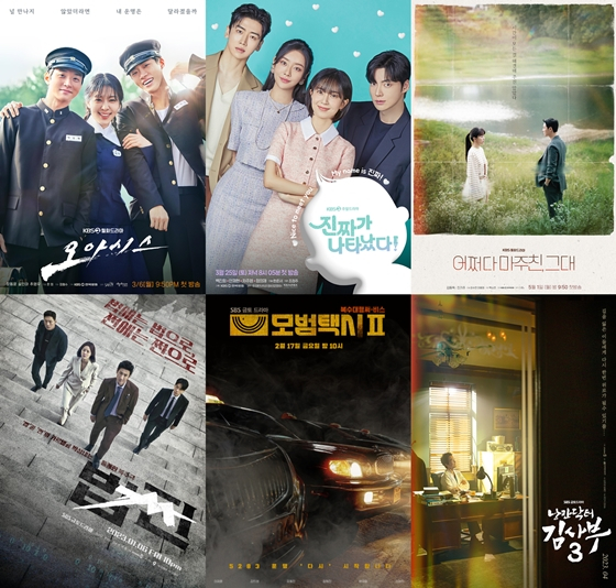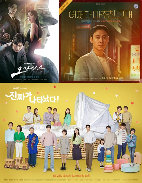 월화드라마는 '두뇌공조', '오아시스', '어쩌다 마주친, 그대'다. 일일드라마는 KBS 2TV '태풍의 신부'(3월 9일 종영), '비밀의 여자', KBS 1TV '내 눈에 콩깍지' '금이야 옥이야'다. KBS 드라마 간판인 주말드라마는 '삼남매가 용감하게'에 이어 '진짜가 나타났다!'가 방송 중이다.