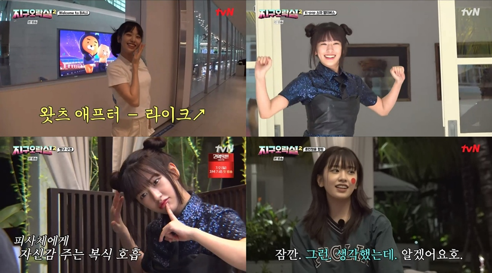 안유진은 지난 23일 방송된 tvN '뿅뿅 지구오락실2(이하 '지락실2')'에 출연해 발리를 배경으로 한 예측 불허 대모험을 펼쳤다.