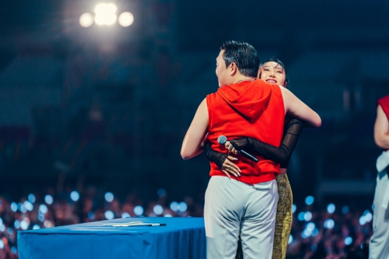 싸이는 이날 공연 도중 "나는 '피네이션'이라는 작은 음악 회사를 운영하고 있다. 중요한 계약 건이 있다"라며 "이렇게 하는 건 이례적이다. 세계 최초가 아닐까 한다"라며 계약에 대한 운을 뗐다.