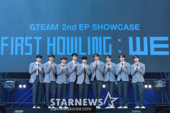 그룹 &TEAM이 18일 일본 도쿄 롯폰기 힐즈 아레나에서 진행된 미니 2집 'First Howling : WE' 미디어 쇼케이스에서 포즈를 취하고 있다. /사진제공=하이브 레이블즈 재팬 2023.06.18 /사진=이동훈 기자 photoguy@
