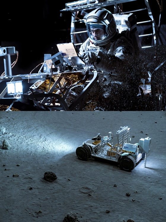 이를 위해 제작진은 NASA에서 쓰이는 부품을 연구하여 같은 재료와 재질을 사용해 우주선 세트를 만들고 실제 달에 가서 운행할 수 있을 정도의 퀄리티를 가진 월면차까지 제작했다.