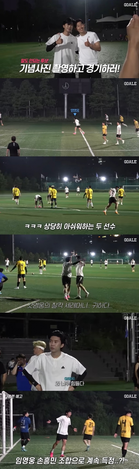 가수 임영웅이 세계적인 축구선수 손흥민과 한 팀을 이뤄 축구를 했다.
