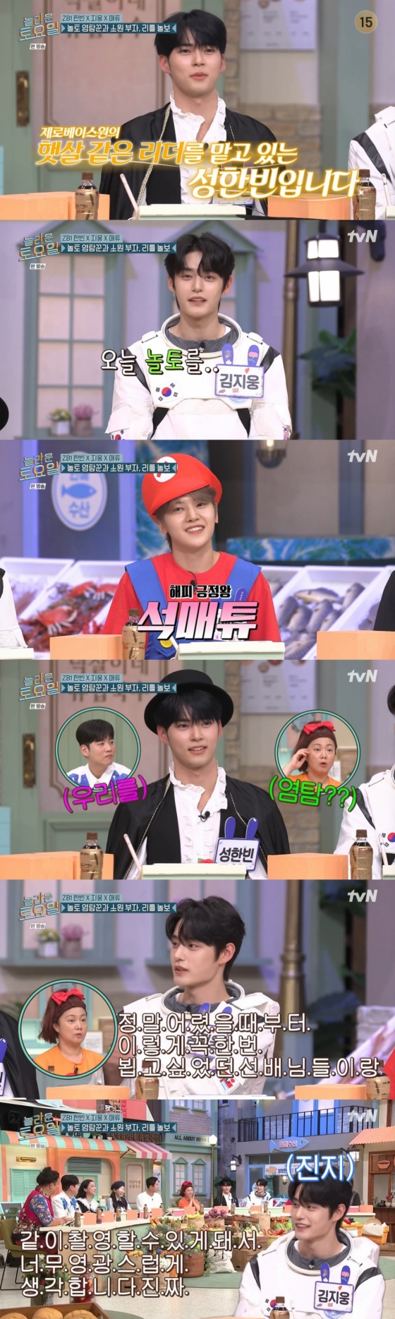 성한빈은 평소 '놀토'를 염탐해 왔다고 고백했다. 성한빈은 "'보이즈 플래닛'으로 데뷔를 했는데 '놀토'와 촬영이 겹치는 날이 있었다. '보이즈 플래닛'과 '놀토'가 같은 스튜디오를 썼다. 우리 대기실에서 선배님들 모습이 보여서 멤버들끼리 '오늘 '놀토' 촬영했나봐'라고 했었다. 몰래몰래 들어와서 구경도 했었다"라고 이야기했다.