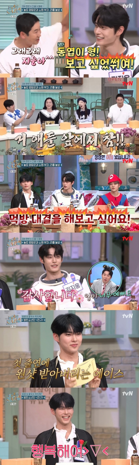 김지웅은 "'놀토'에서 꼭 이루고 싶은 세 가지 소원이 있다"면서 "어렸을 때부터 꼭 뵙고 싶었던 선배님들과 촬영할 수 있어서 영광이다. 다 너무 존경스럽지만 동엽 선배님을 제일 존경한다. 맏형으로서 프로그램을 이끌어가시는 힘, 분위기, 온도를 느끼고 싶었다"라고 말했다.