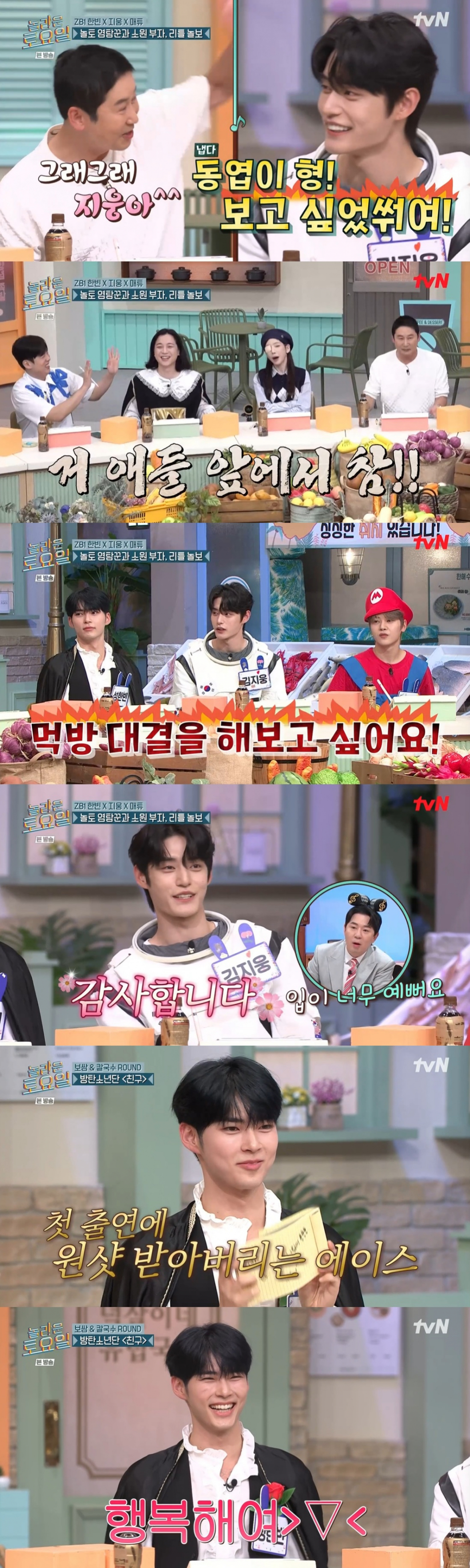 이어 성한빈 "오늘이 데뷔 6일차다"라며 신인다운 패기를 강조했고, 신동엽은 "박나래가 한껏 상기됐다"라며 제로베이스원에게 입덕한 박나래를 언급했다. 이에 박나래는 제로베이스원을 향해 "어휴 세상에. 모르는 거 있으면 언제든지 물어봐라"라며 남다른 팬심을 드러냈다.