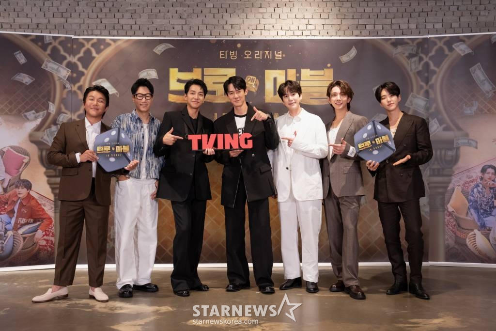17일 오전 티빙 오리지널 예능 프로그램 '브로 앤 마블' 제작발표회가 온라인으로 진행됐다. 행사에는 이홍희 PD를 비롯해 가수 겸 배우 이승기, 배우 유연석, 그룹 슈퍼주니어의 규현, 방송인 지석진, 조세호, 그룹 세븐틴의 조슈아, 호시가 참석했다. 배우 이동휘는 일정상 불참했다.