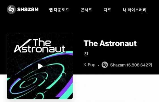 진의 '디 애스트로넛'은 K팝 역대 가장 많이 샤잠 된 곡으로, 7월 20일 현재 1580만 샤잠을 돌파하고 있다.