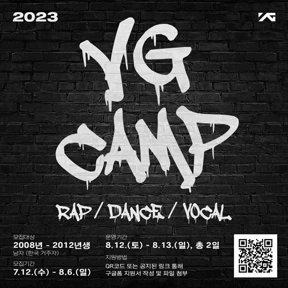 한편 '2023 YG CAMP'의 자세한 정보는 YG 오디션 홈페이지 및 SNS를 통해 확인할 수 있다.