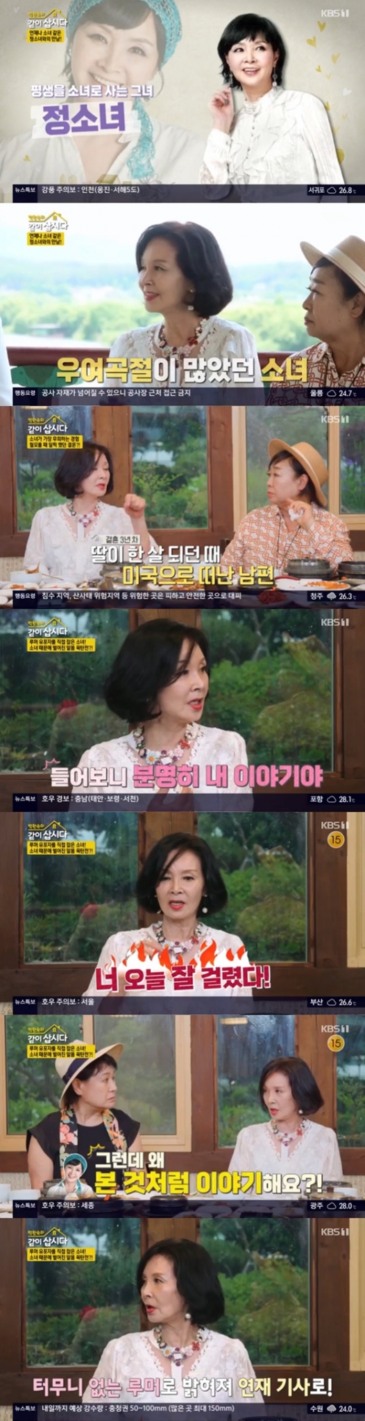 23일 오전 방송된 KBS 1TV '박원숙의 같이 삽시다'(이하 '같이 삽시다')에서는 정소녀가 자매들(박원숙, 혜은이, 안소영, 안문숙)과 만났다.
