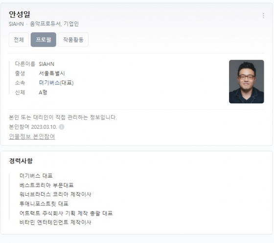 그룹 피프티 피프티 멤버들을 소속사 어트랙트로부터 강탈해 이득을 취하려 했다고 의혹을 받는 더기버스 안성일 대표가 학력위조 외에도 이력위조까지 했다는 의혹에 "오기재"라고 짧은 입장만 밝혔다.