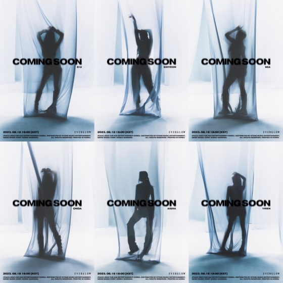 이에 앞서 에버글로우는 공식 SNS를 통해 커밍순 포스터를 기습 공개했다. 각 개별 포스터에서 에버글로우 멤버들은 베일에 싸인 채 실루엣만을 공개해 눈길을 모았다. 특히 저마다의 포즈로 서로 다른 매력을 발산하며 신보에 대한 궁금증을 더했다.