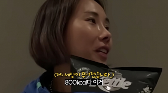 신봉선은 예상치 못한 수치에 "벌써부터 불안하다"는 반응을 보였고 알고보니 신봉선이 먹은 감자칩은 165g에 열량은 800kcal가 넘었다.