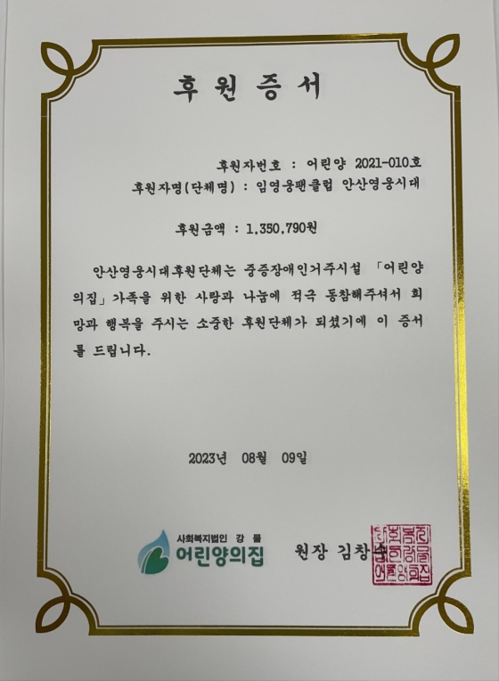 2년 전부터 어린양의집과 인연을 맺고 미용 봉사와 후원금을 기부 중인 안산영웅시대는 "앞으로도 계속 선한영향력을 전파하는데 힘을 보탤 것"이라고 전했다.