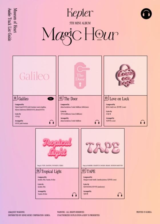 케플러(최유진, 샤오팅, 마시로, 김채현, 김다연, 히카루, 휴닝바히에, 서영은, 강예서)는 4일 0시 공식 SNS를 통해 오는 25일 발매될 미니 5집 'Magic Hour (매직 아워)'의 트랙리스트를 공개했다.