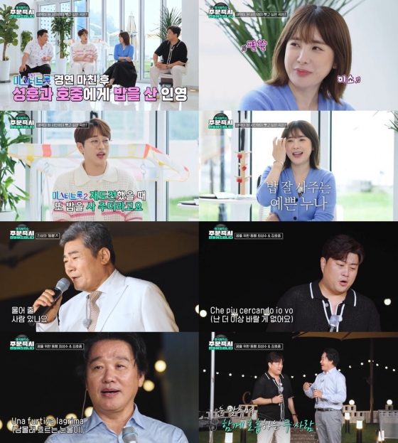 이후 서인영의 근황과 첫 주문이 이어졌다. "너무 행복하다"라며 말문을 뗀 서인영은 설렘 가득한 신혼 생활을 털어놓는가 하면, "김호중 씨가 불렀던 '고맙소'를 리메이크하고 싶다"라며 아무도 예상 못한 주문을 넣어 모두를 깜짝 놀래켰다.
