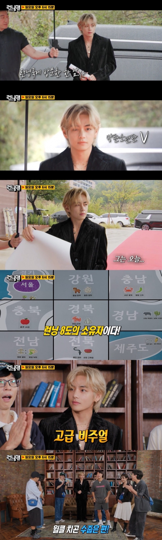 뷔가 출연하는 '런닝맨'은 10일 오후 6시 15분에 방송된다.