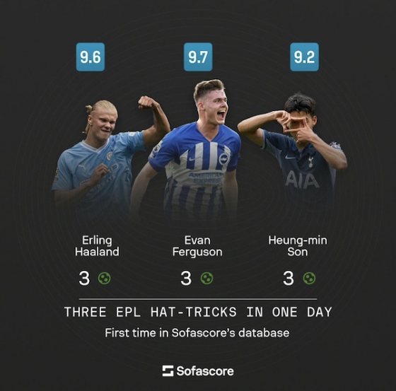 축구 통계 업체 ‘옵타’에 따르면 하루에 3명의 해트트릭 달성자가 나온 것은 지난 1995년 로비 파울러, 앨런 시어러, 토니 예보아에 이어 28년 만에 나온 진기록이다. 해트트릭을 기록한 세 선수 모두 BBC 선정 ‘금주의 팀’에 포함됐다. 또한 손흥민의 팀 동료 제임스 메디슨과 크리스티안 로메로도 함께 포함됐다.