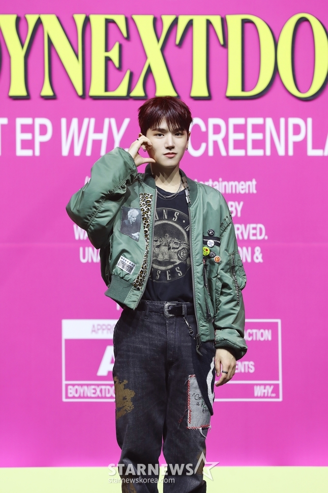 보이그룹 보이넥스트도어(BOYNEXTDOOR) 리우가 4일 오후 서울 광진구 광장동 예스 24라이브홀에서 미니 1집 'WHY..' 발매 기념 쇼케이스에 참석해 포즈를 취하고 있다.