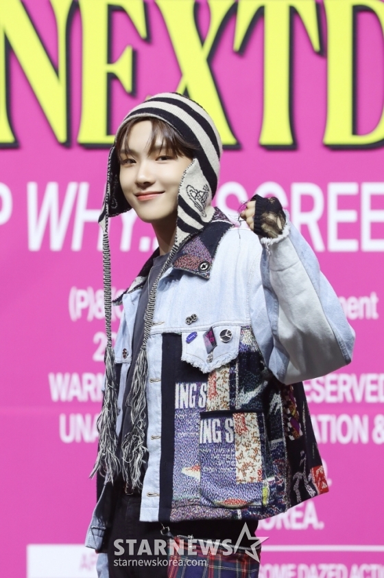 보이그룹 보이넥스트도어(BOYNEXTDOOR) 운학이 4일 오후 서울 광진구 광장동 예스 24라이브홀에서 미니 1집 'WHY..' 발매 기념 쇼케이스에 참석해 포즈를 취하고 있다.